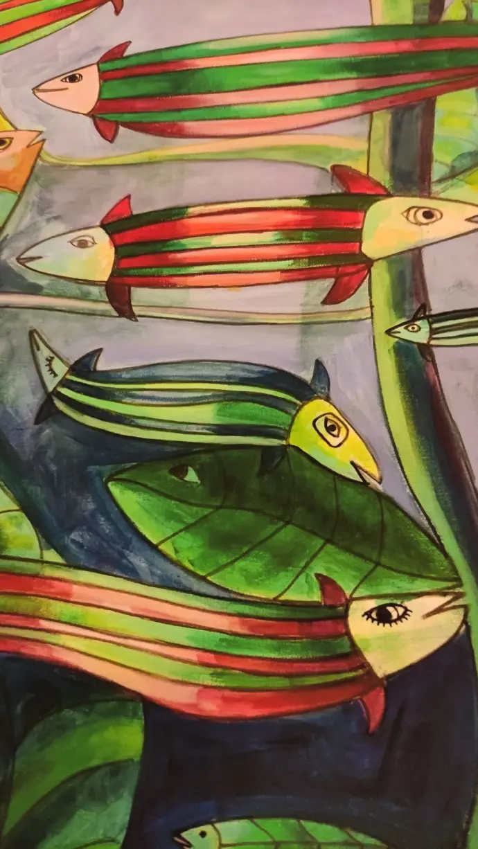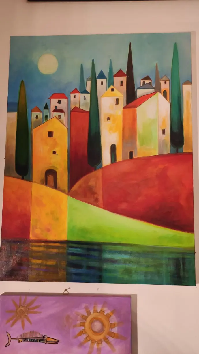 Colori allegri, vivaci, che giocano, che si incontrano e si scontrano e, soprattutto, che comunicano emozioni, energia, gioia e calore."