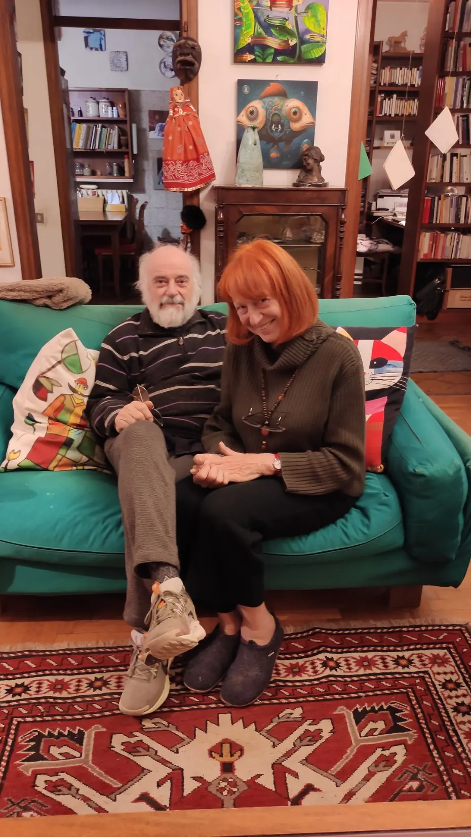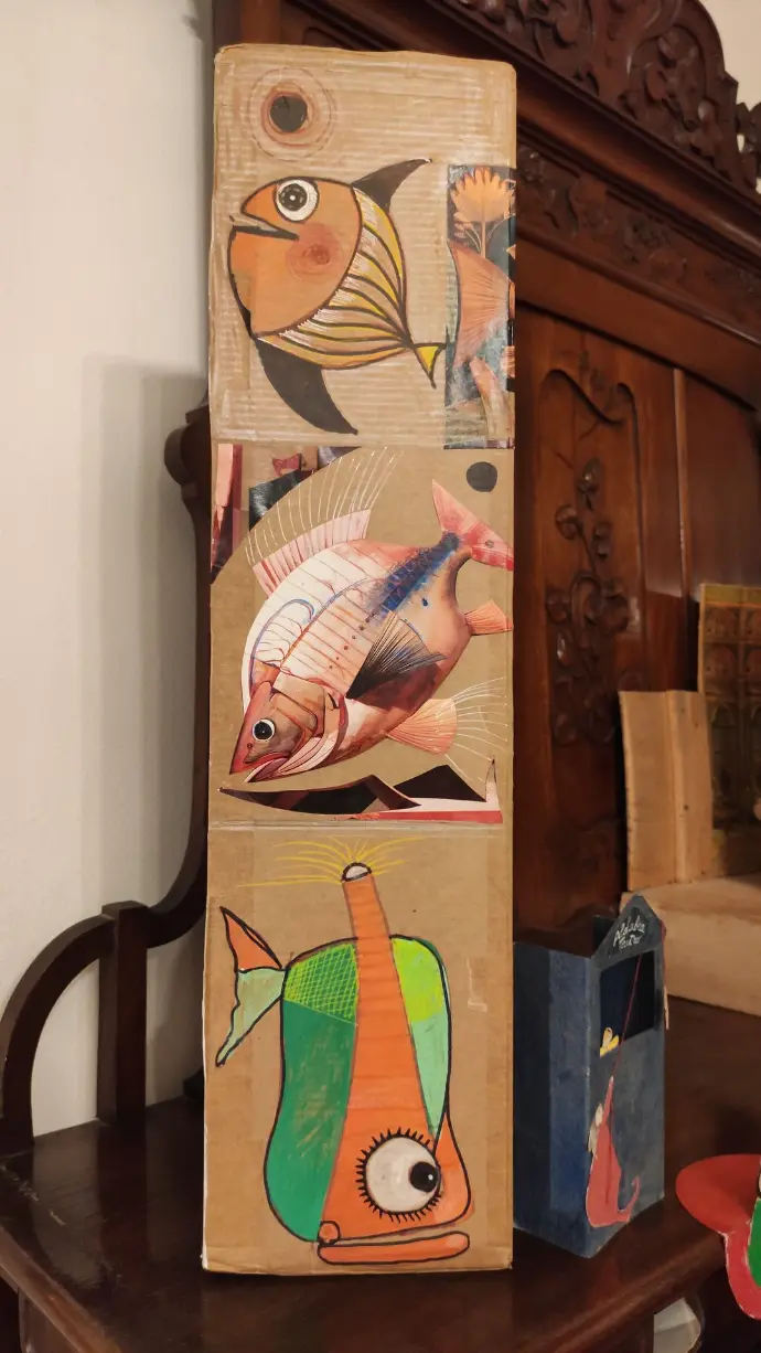 Una sera d’inverno ci ha aperto le porte del suo laboratorio, accompagnandoci in un universo fatto di storie, materia e colore, dove emozioni, ricordi, pesci, forme, fantasie e burattini prendono vita.