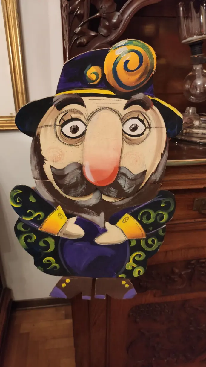 Un‘unione che plasma la mia carriera artistica proponendo un’arte in cui la pittura è al servizio dei burattini e viceversa, ispirandosi e stimolandosi reciprocamente."