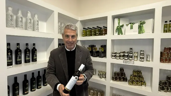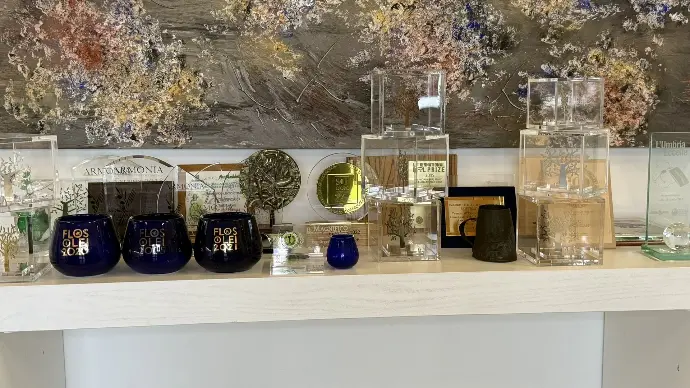 Il prodotto principale è l’olio extravergine di oliva di qualità premium, declinato in tre etichette che si differenziano per periodo di lavorazione. “Riserva” nasce dall’unione delle cultivar Frantoio e Moraiolo, è un olio strutturato, intenso, più volte premiato tra i migliori al mondo dalla guida Flos Olei. “Affiorante” è un monocultivar Moraiolo prodotto nella fascia Assisi-Spoleto, irripetibile altrove perché è frutto delle specifiche condizioni pedoclimatiche della zona. È l’espressione più autentica del territorio umbro. Si chiama così perché è il primo olio che affiora nella stagione produttiva ed è caratterizzato da note amare e piccanti decise ma armoniche. “Sassente” è l’ultima etichetta, nata dall’esigenza di rispondere alle richieste di chef italiani e internazionali che cercavano un olio più delicato per piatti come crudi e sashimi di carne o pesce. Pur mantenendo alta qualità e ricchezza nutrizionale, presenta sentori di mandorla verde, un amaro molto tenue e un piccante leggerissimo. Inoltre abbiamo sviluppato anche una linea di alta cosmesi biologica per viso, corpo e capelli, interamente realizzata con il nostro olio e seguita personalmente da mia moglie. Nel 2021 abbiamo avviato un brand di negozi monomarca, a Cortona, Assisi, Montefalco, Spoleto oltre a quello allestito in azienda. Accanto agli oli selezioniamo alcune eccellenze umbre come tartufo, paté di olive e sott’oli, scelti per valorizzare il territorio.