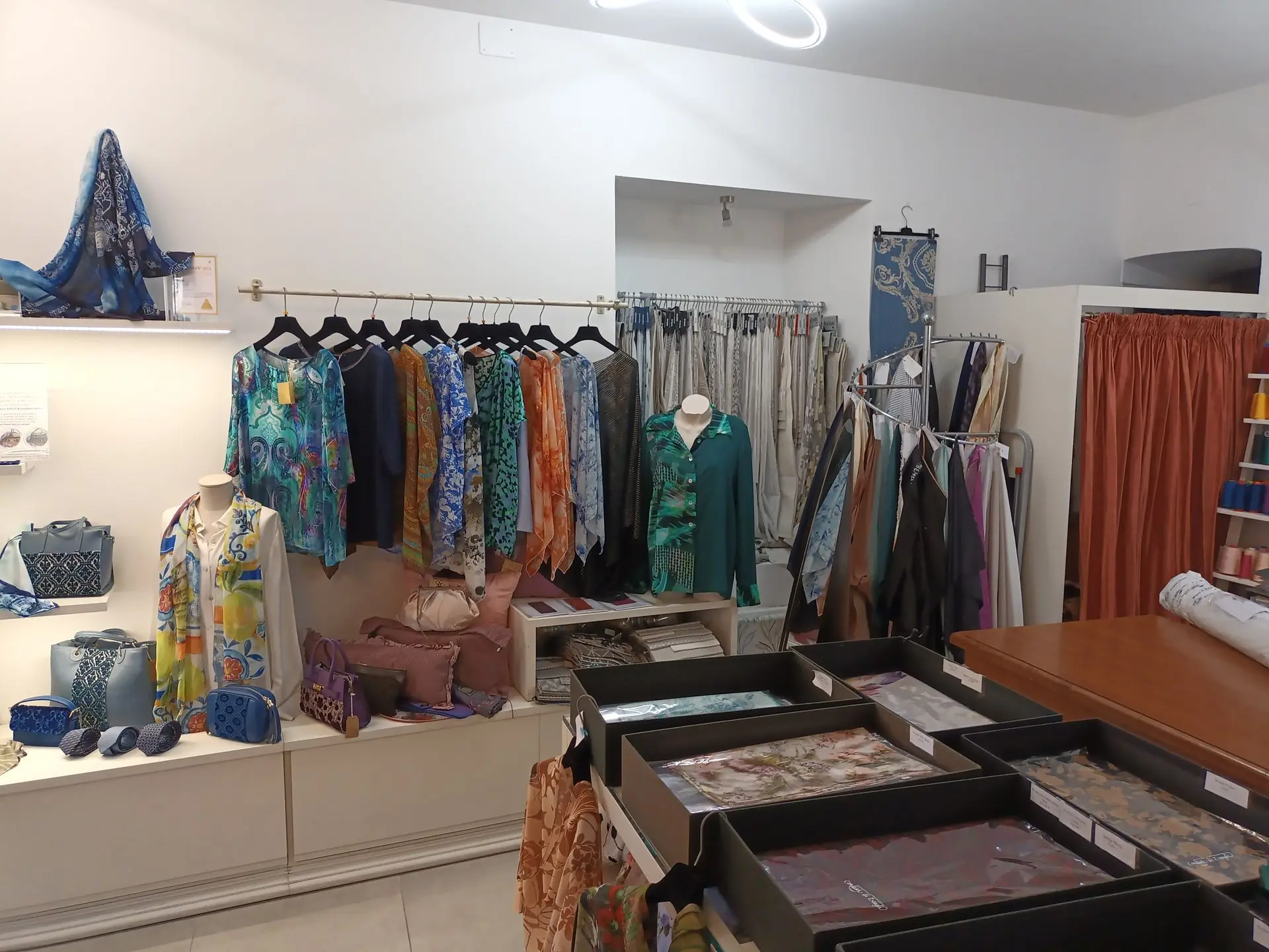 "In questo atelier svolgiamo diverse attività, partendo dalla principale che è la vendita di tutti i nostri tessuti e di tutte le nostre sete a taglio a metro.