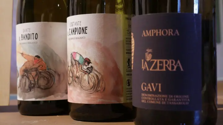 “Il progetto si chiama ‘In fuga’, perché questi personaggi erano perennemente in fuga: uno dalle guardie e uno per la vittoria. Si tratta di una storia legata al territorio, perché i due personaggi erano di Novi Ligure. Uno era Sante Pollastri, il famoso bandito ricercato in tutta Italia, l’altro Costante Girardengo, il campionissimo di tutti i tempi del ciclismo. Parliamo degli anni Venti del Novecento. Abbiamo voluto rendere omaggio a questi personaggi perché fanno parte della nostra storia. Facendo dei vini come si facevano una volta, li abbiamo legati a questi due personaggi di un tempo. Abbiamo utilizzato etichette molto particolari e molto accattivanti”.