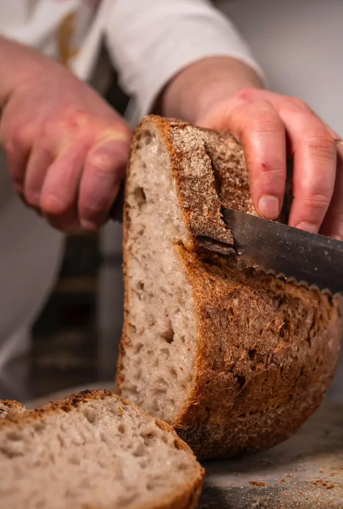 "Utilizziamo diversi metodi in base alla varietà dei prodotti. Per i pani a lievitazione naturale preferiamo la lunga lievitazione in forma: prepariamo l'impasto il giorno precedente, lo lasciamo riposare in massa per attivare la fermentazione e poi lo lasciamo lievitare a temperatura controllata fino alla notte successiva.