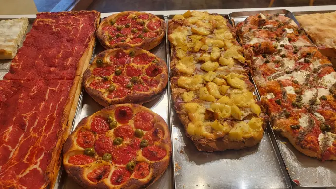 Verso le 5:30 iniziano le cotture di pane e focacce, che finiamo intorno alle 8:00. Il team della pasticceria inizia invece verso le 6:00: cuociono la viennoiserie per le prime colazioni e allestiscono il banco delle mignon e le farciture delle pale romane. Alle 7:00 apriamo il negozio: tutto deve essere perfetto per accogliere i nostri clienti."