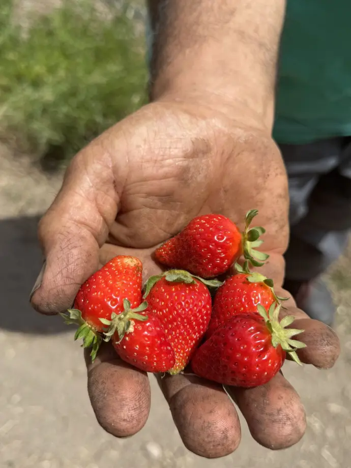 Prima di raccontarci la storia della sua azienda agricola, Francesco ci ha portati a fare un giro nella tenuta per toccare con mano la terra e vedere i vari prodotti coltivati. Per allietare la nostra visita, ci ha offerto anche delle gustosissime e succose fragole prese direttamente dal terreno.
