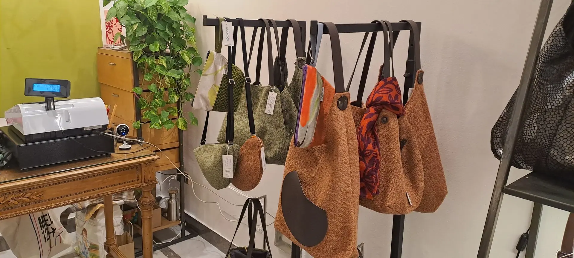"I nostri prodotti principali sono accessori moda, prevalentemente borse, realizzati in modo sostenibile recuperando giacenze di magazzino, sia nostre che di altri produttori.