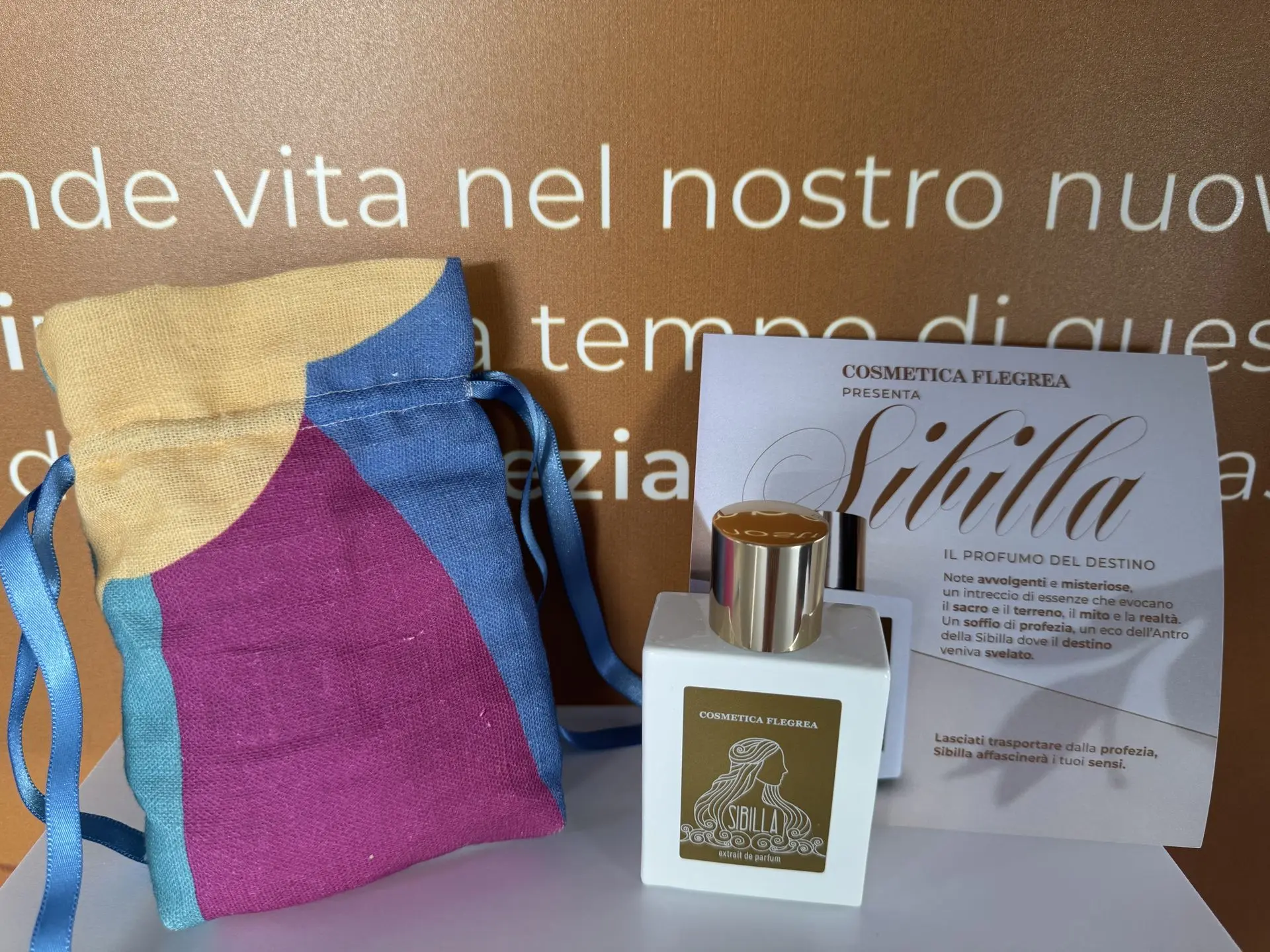 Quest’estate ho lanciato un nuovo prodotto della mia linea Cosmetica Flegrea: Sibilla, il profumo del destino. Caratterizzato da note avvolgenti e misteriose, questo profumo è un intreccio di essenze che evocano il sacro, il mito e il mistero della femminilità. Sibilla è un soffio di profezia, un eco dell’Antro della Sibilla dove il destino viene svelato.