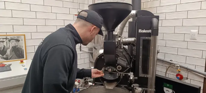 "Per quanto concerne le attrezzature, il cuore del nostro laboratorio è la tostatrice “Balestra” da 5kg, un modello dal fascino antico progettato e realizzato su misura per la nostra attività. Nell'area caffetteria, la tecnologia sposa la tradizione grazie all'utilizzo di una Cimbali Profile, macchina top di gamma tra le migliori sul mercato, abbinata a una macinazione on-demand.