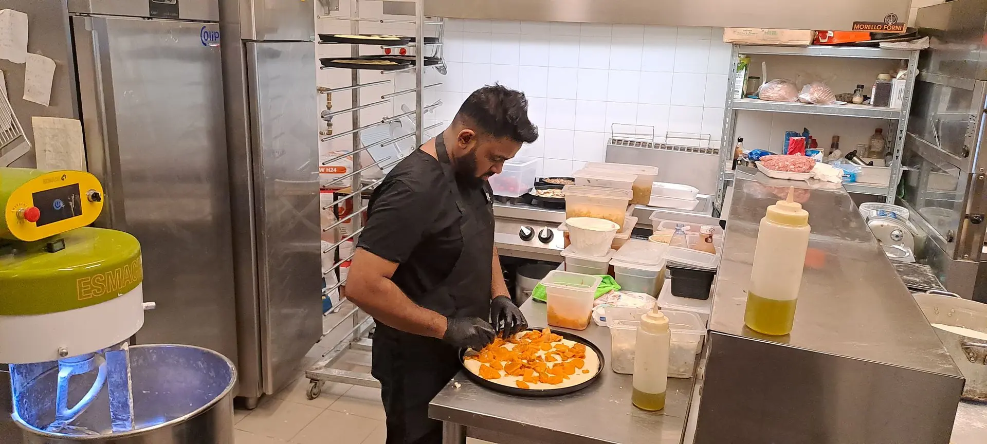 "A novembre 2023, il mio viaggio mi ha portato a far conoscere l'autentica focaccia pugliese a Palermo. Il mio obiettivo era dare vita a un connubio gastronomico unico, capace di far dialogare le due terre attraverso una contaminazione ricercata tra i sapori e gli ingredienti d'eccellenza di Puglia e Sicilia".