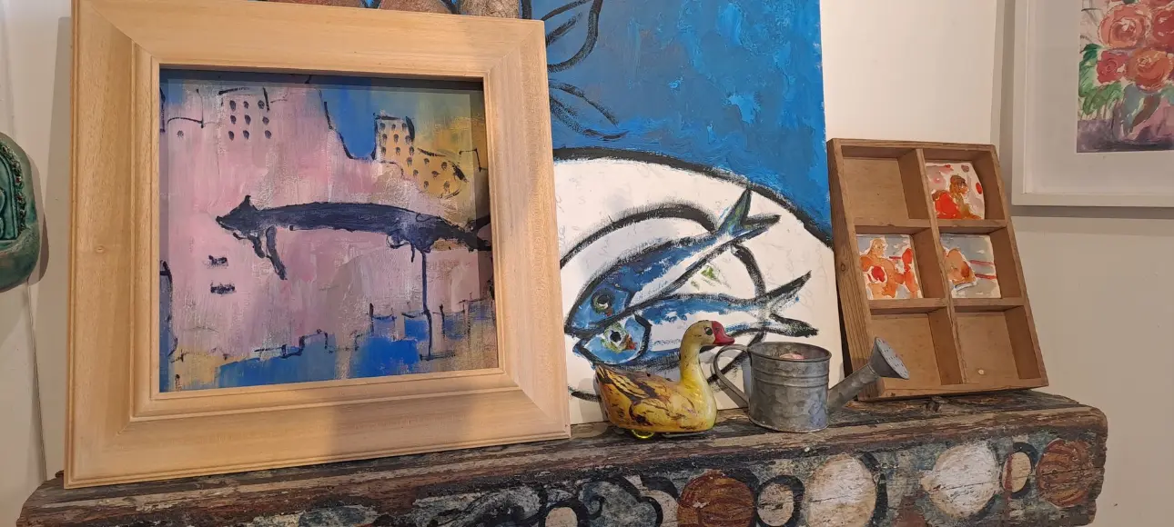 Così, quando qualcuno passa davanti alla bottega e mi vede ferma a riflettere, io sto già lavorando: sto catturando elementi di pensiero. L’ispirazione può nascere da qualunque cosa: da una boccetta di inchiostro, da un passante con il suo cane o dai miei gatti. È in quel momento che inizio a dipingere.