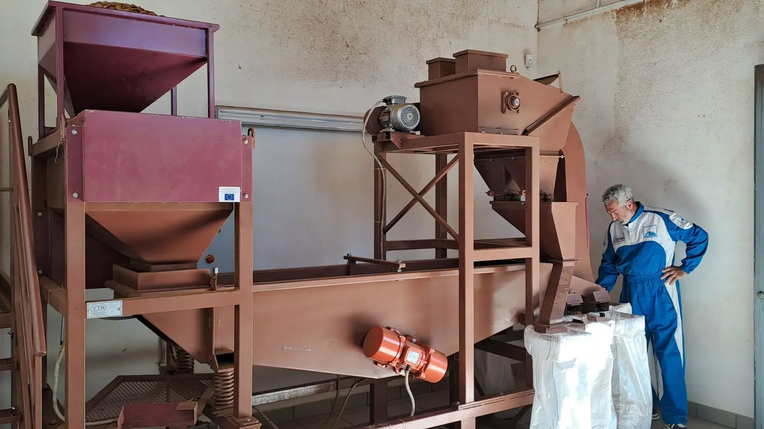 Adesso c’è una classica sgusciatrice che separa la buccia dal prodotto, per ottenere un prodotto sopraffino. Enzo Ganci assaggia il prodotto. Appare soddisfatto. Anche quest’anno tutto bene.