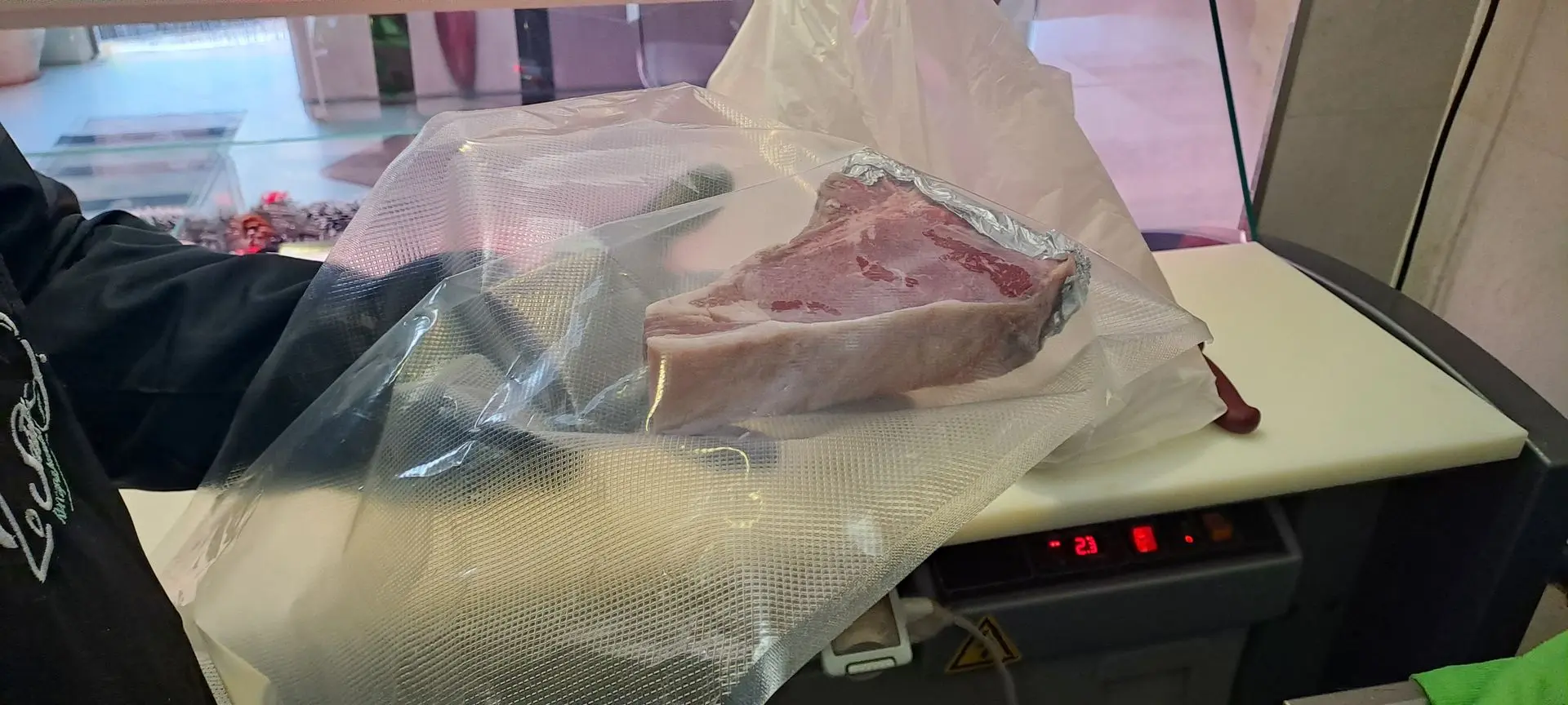 Tornando al lavoro quotidiano, Stefano si alterna con il padre dietro il bancone, unendo l'esperienza della tradizione alla freschezza delle nuove tecniche. La sua è una danza di precisione: inizia con la preparazione della salsiccia artigianale, per poi passare alla fase più tecnica del lavoro, ovvero l'ispezione e la disossatura dei vitelli. Con occhio esperto, Stefano seleziona personalmente i capi migliori per ricavarne la sua amata bistecca fiorentina, prelevando il taglio con rigore millimetrico all’altezza della lombata, il cuore nobile dell'animale"