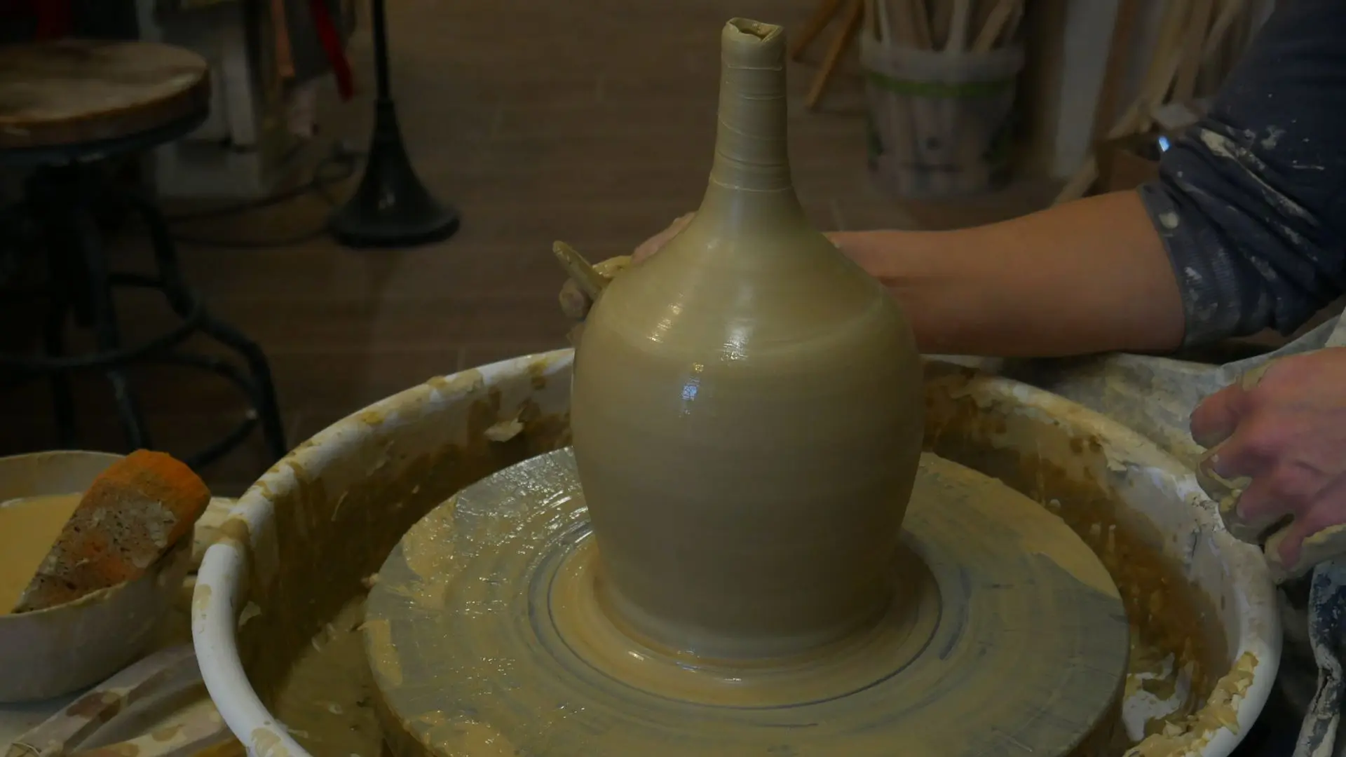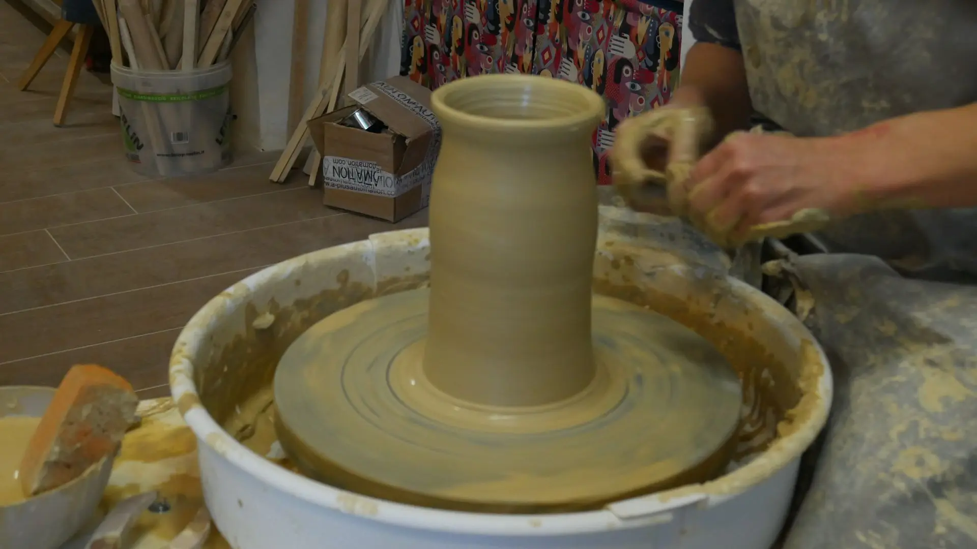 “Un’altra attività che svolgo nel mio laboratorio è quella dell’insegnamento. Perché ritengo che sia importante? Per non far morire un mestiere artigianale. Chiaramente, le persone che ormai sono abituate a non avere un contatto fisico con gli oggetti e a non usare le proprie mani hanno bisogno di un ritorno alla semplicità.Quindi, l’idea di fare corsi di ceramica nasce da questo: sia dalla necessità di far conoscere e capire quali sono gli sforzi di un lavoro artigianale, sia per il benessere delle persone.”