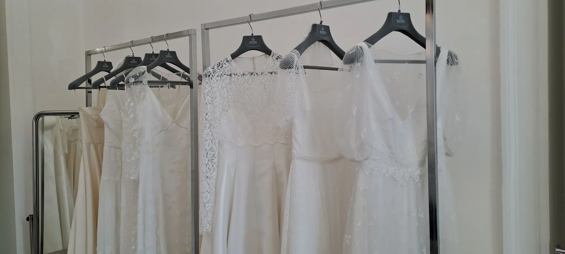 "Le clienti che scelgono More sono alla ricerca di un abito che sia elegante e raffinato, senza essere ostentato. Prediligiamo proporre linee sobrie e pulite, evitando trasparenze eccessive, lustrini o elementi troppo invadenti che potrebbero distogliere l'attenzione dalla naturale bellezza della sposa.