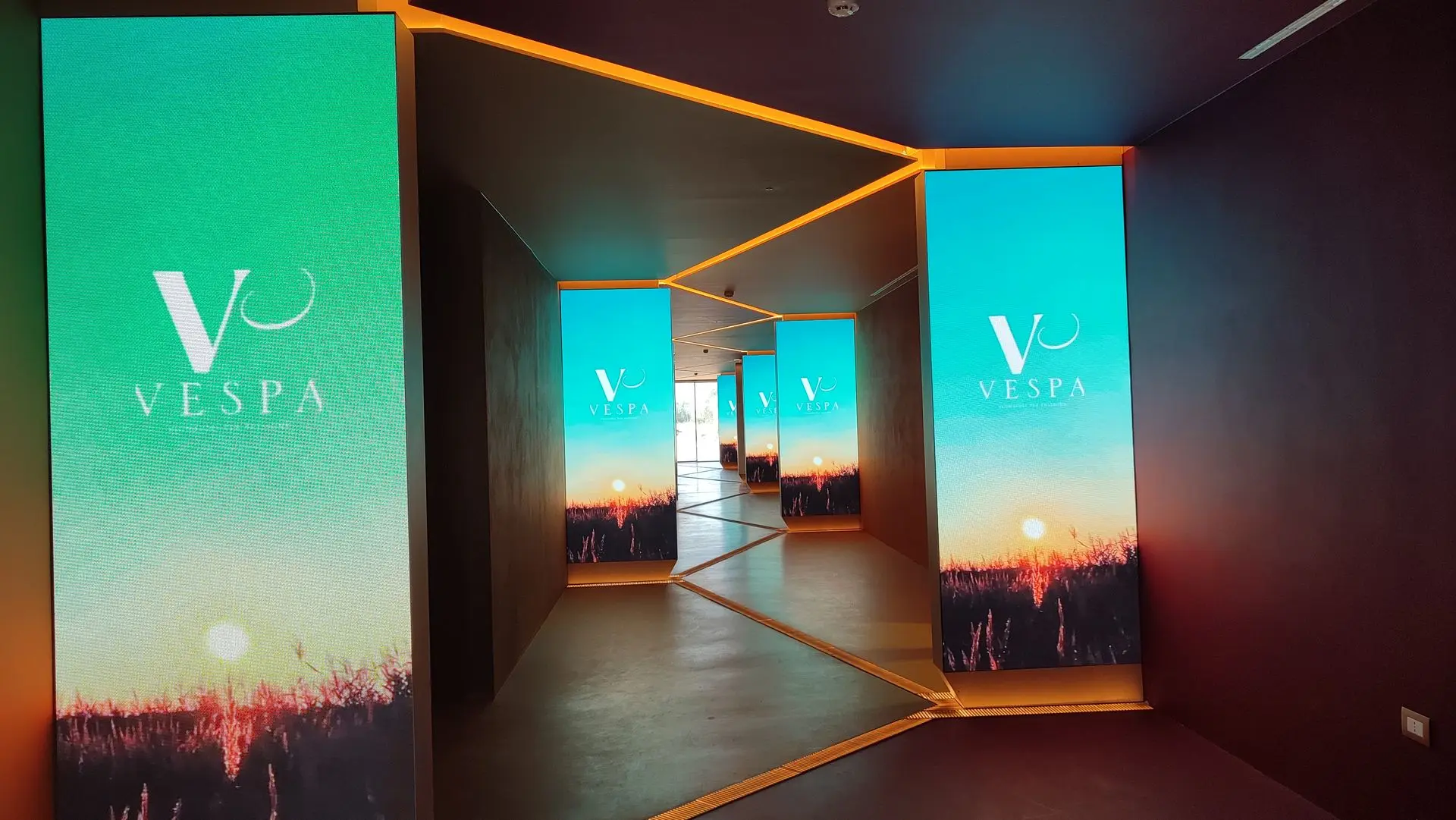 È lui l’amministratore delegato della vitivinicola della famiglia Vespa. La sua attenzione è ovunque, i suoi piedi anche. Perché l’azienda è tutta da camminare: dalla terra argillosa dei vigneti (che, oltre che a Manduria, si trovano anche nei paesi circostanti di Avetrana e Lizzano), all’audace percorso esperienziale dei ledwall totem, che accoglie i visitatori in cantina.