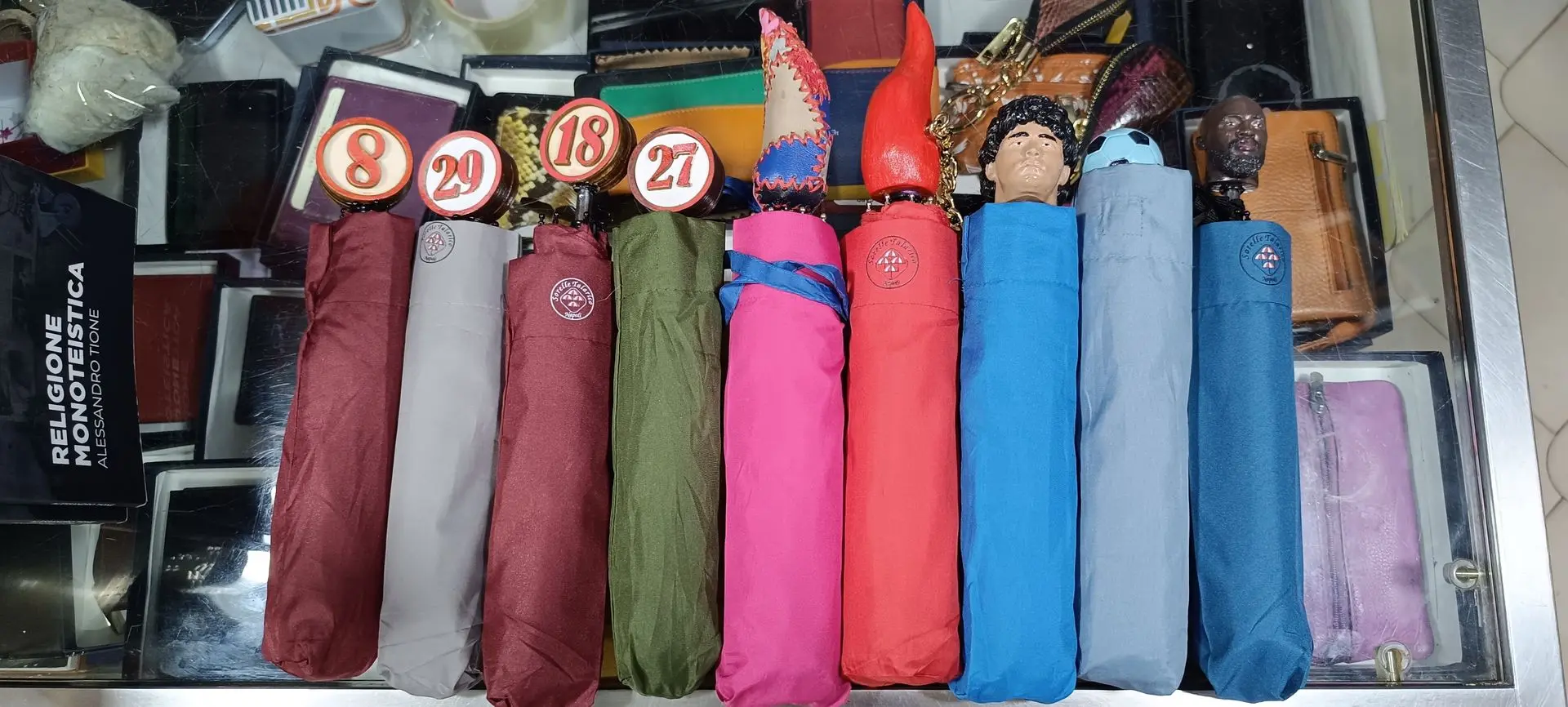 Per omaggiare le nostre radici, abbiamo realizzato un ombrello-opera che li richiamasse, con disegni che navigano tra sacro e profano, con figure che ci riconducono al Vesuvio, a San Gennaro, oppure il Sole, la sirena Partenope e il leggendario rivoluzionario Masaniello. Questi prodotti, che incarnano il territorio, ci hanno reso lustro proprio perché hanno attirato l'attenzione nazionale di diversi media.