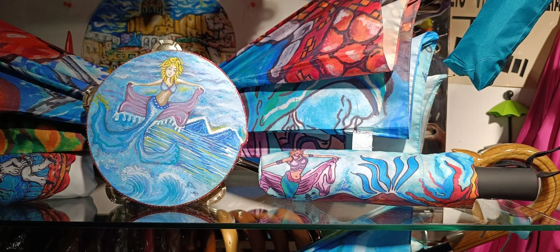 "Quello che è il nostro fiore all'occhiello, motivo di orgoglio, sono sicuramente gli ombrelli ricamati e dipinti a mano che rappresentano la cultura, la storia e i miti del popolo napoletano.